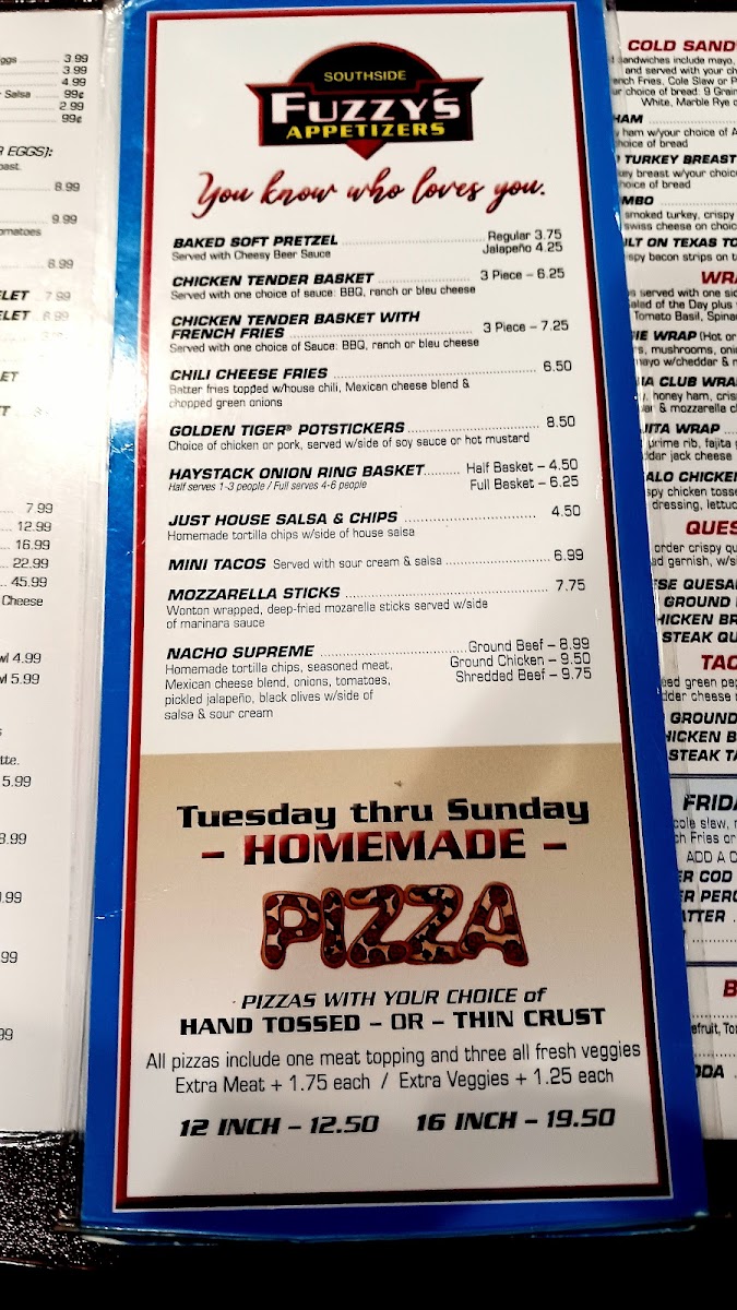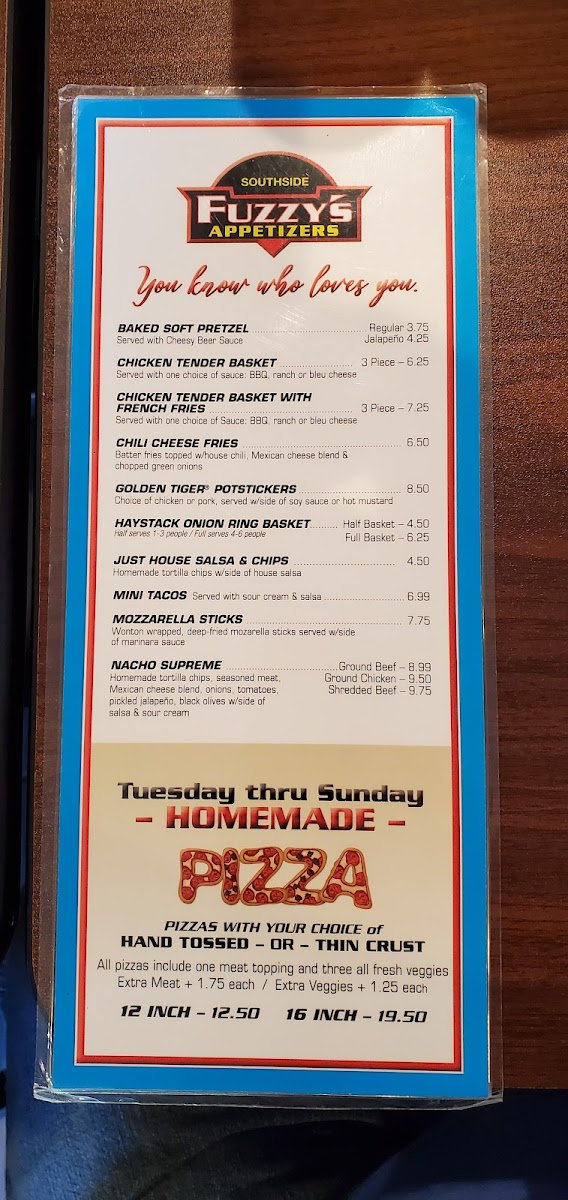 Welcome to Fuzzy's Southside Pub & Grill, a beloved local eatery located in Waukesha, WI. Known for its inviting atmosphere and exceptional service, this pub offers a diverse menu that caters to every craving, from hearty breakfasts like their famous pancakes to flavorful appetizers such as Chili Cheese Fries. The standout dishes, including the acclaimed Philly Cheese Steak and homestyle chili, consistently receive rave reviews for their quality and value. With enthusiastic staff ready to attend to your needs, Fuzzy's creates a warm, community-focused dining experience, making it the perfect spot for family gatherings and memorable celebrations.