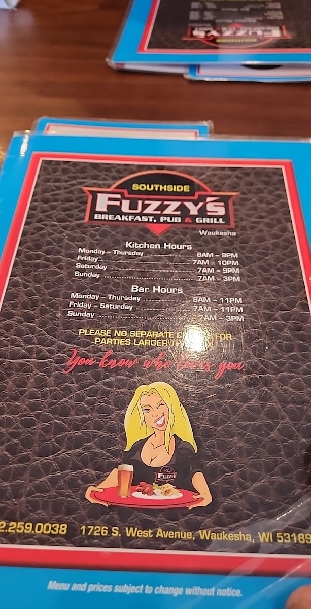 Welcome to Fuzzy's Southside Pub & Grill, a delightful dining experience nestled in the heart of Waukesha, WI. Located at 1726 S West Ave, this charming establishment is not just a place to eat; it’s a community hub where good food and warm hospitality come together.